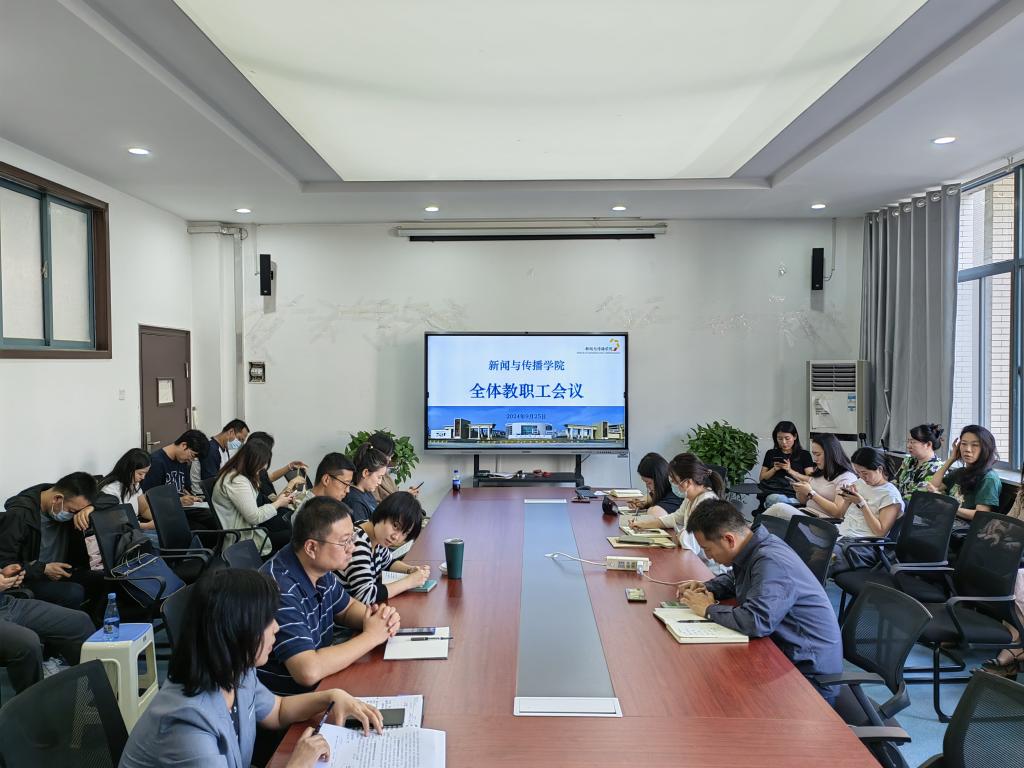 9月25日下午,我院在会议室召开全体教职工会议,会议由院长黄建友主持。 会上,党委书记张梅传达了学校《改进作风提升效能工作措施的通知》,通报了校园安全问题,针对安全隐患排查、意识形态等工作,她强调要高度警惕学院意识形态领域面临的重大风险,守好课堂主阵地,守牢师德师风红线底线,提高师生安全防范意识,筑牢校园安全防线。副院长李鹏从审核评估、教学研究、教学质量、教师教学竞赛、实践教学、本科招生、语言文......